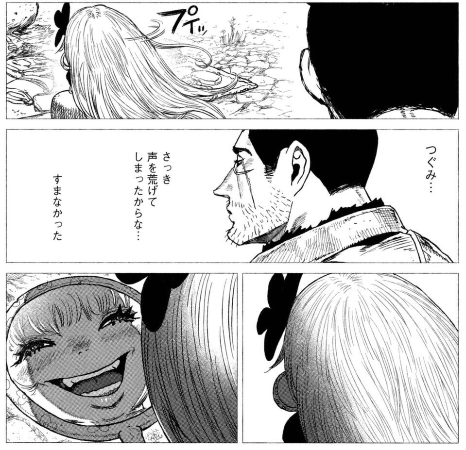 命がけのサバイバルとつぐみちゃんの喜怒哀楽が最高。最後の方に出てきた癖強仮面商人のデザインもめっちゃ好き。つくしあきひと氏のつぐみちゃん可愛すぎて泣きそう。