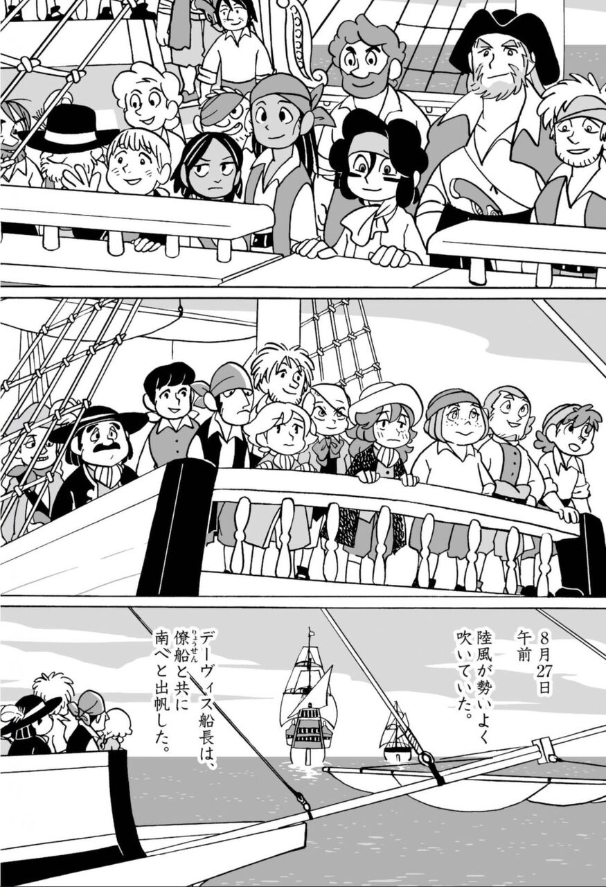 17世紀、航海がまだまだ危険だった時代に海を渡った冒険家の話。絵は優しいんですが、史実に沿っており、乗組員はケンカ別れしたり、病気になったり、略奪をしたり話は凄く現実的です。